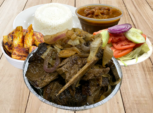 ALL MEATS ARE SERVED WITH: RICE, BEANS & SWEET PLANTAIN. ADD SALAD $2.00 • SERVED IN A DIFFERENT CONTAINER ADD $2.00 TODAS LAS CARNES SON SERVIDAS CON: ARROZ, HABICHUELA Y PLATANO MADURO. AGREGUE ENSALADA POR $2.00 EXTRA • SERVIDO POR SEPERADO $2.00 EXTRA